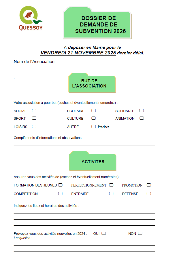 Merci aux associations de retourner les dossiers de demande de subvention accompagnés d’un RIB, pour le vendredi 21 novembre 2025, dernier délai.