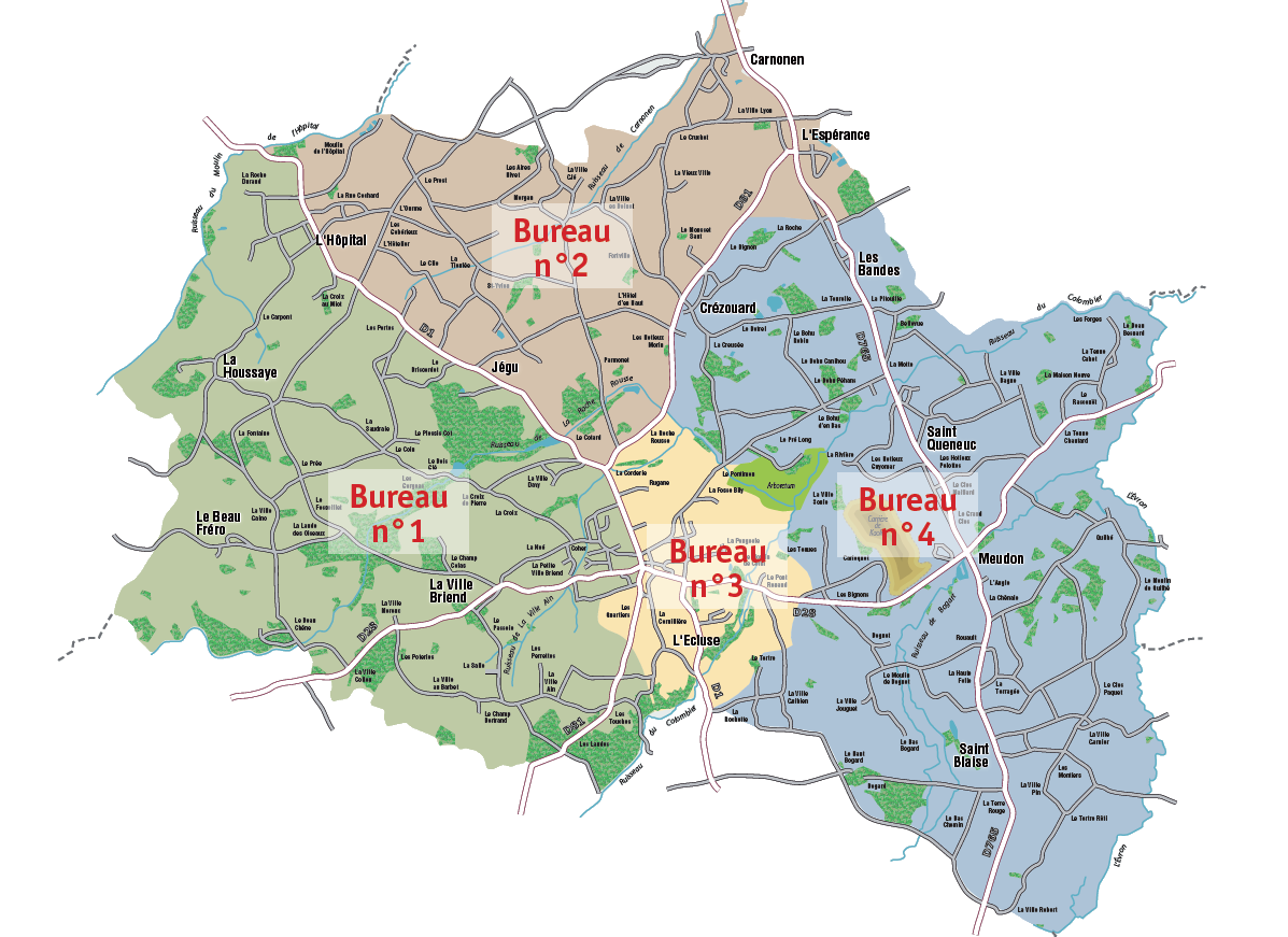 Les bureaux de vote seront ouverts de 8 heures à 18 heures.Les quatre bureaux de vote de Quessoy sont centralisés rue de l'Hôtel Girault, dans l’espace associatif et culturel. Votre bureau spécifique (n°1, 2, 3 ou 4) est indiqué sur votre carte électorale :